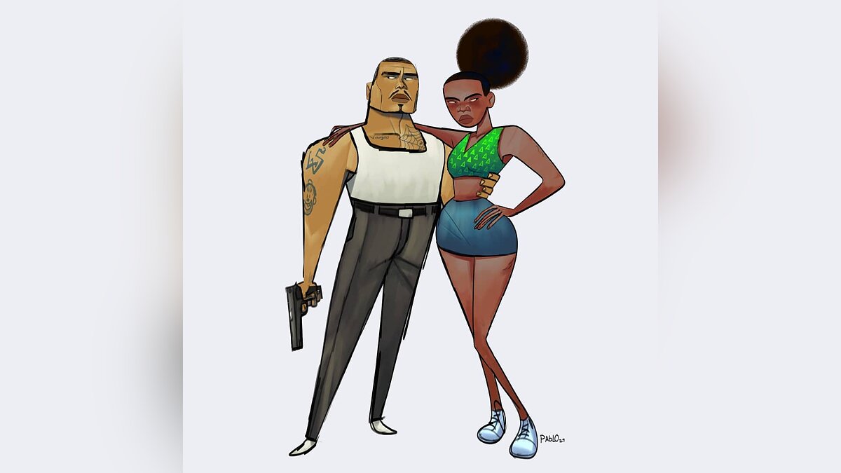 Художник Pablo Cortina (признано в России экстремистской организацией) рисует крутые арты по GTA San Andreas. Ему удается передать атмосферу игры, изобразив персонажей в уникальном стиле и пропорциях.