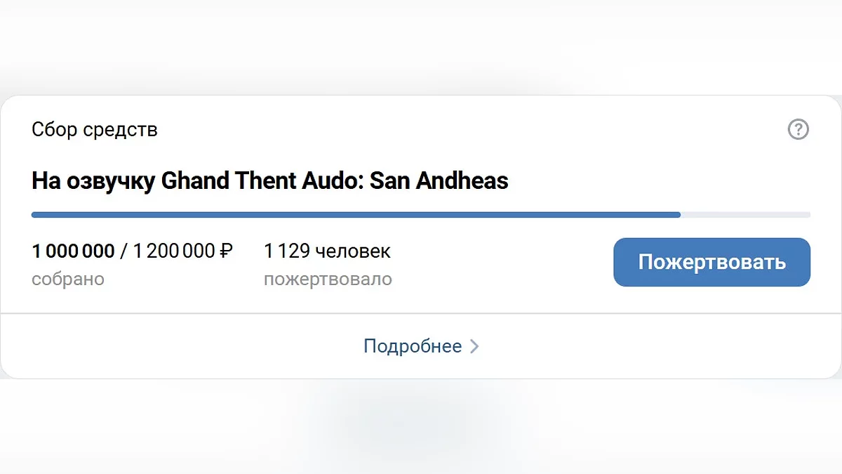 На русскую озвучку Grand Theft Auto: San Andreas собрали 1 млн рублей