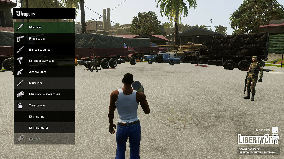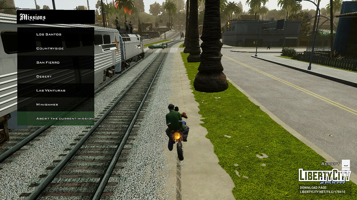 Чит-меню дает доступ ко всему оружию игры, транспорту и одежде. Благодаря моду можно начать любую миссию игры, настроить уровень навыков CJ, трафик на дорогах и погоду.
