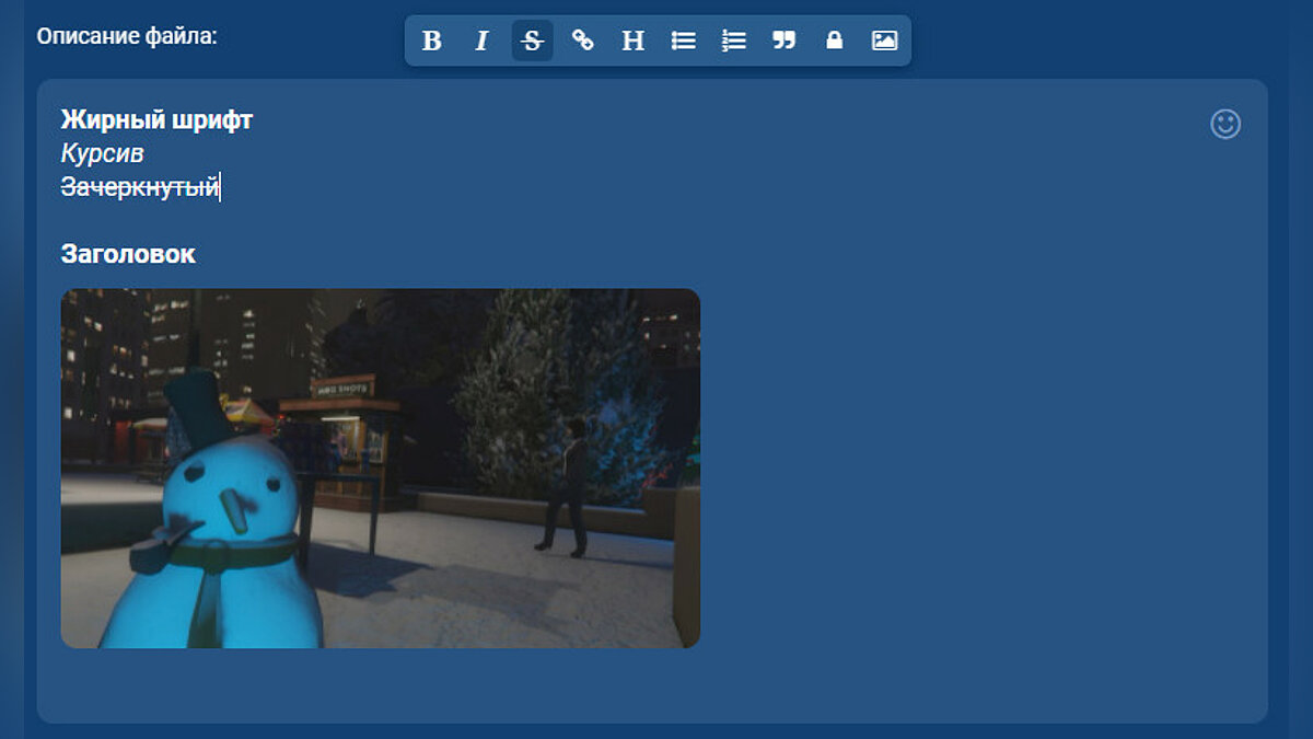Добавляйте в описание картинки, чтобы раскрыть детали вашего мода более подробно. А также используйте спойлеры, цитаты, нумерованные списки и заголовки.
