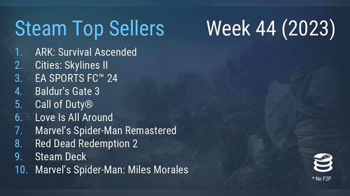 Что касается других игр в топе, то первое место заняла новинка ARK: Survival Ascended — ремастер выживалки на Unreal Engine 5. На втором оказался градостроительный симулятор Cities: Skylines 2.