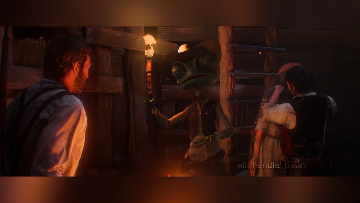 Энтузиаст с ником eli_handle_b․wav опубликовал забавное видео, на котором показал Ранго из одноименного мультфильма в мире Red Dead Redemption 2. В ролике он присоединяется к банде Ван дер Линде.