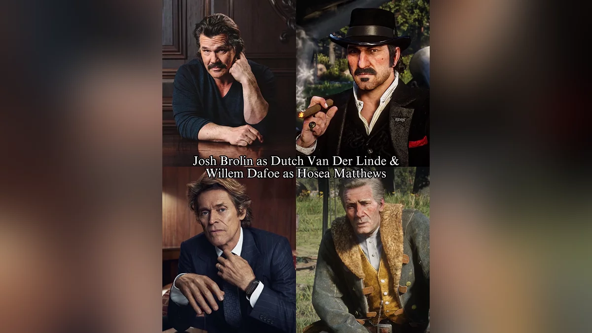 Пользователь с ником InsiderYet опубликовал пост с подборкой актёров, которые могли бы сыграть героев Red Dead Redemption 2. В качестве Артура Моргана он видит Брендона Скленара (Brandon Sklenar), Джона Марстона мог бы сыграть Дилан О’Брайен (Dylan O'Brien), в образе Датча ван дер Линде хорошо смотрелся бы Джош Бролин (Josh Brolin), на роль Сэди Адлер подошла бы Самара Уивинг (Samara Weaving), а Хозию Мэттьюза мог бы сыграть Уиллем Дефо (Willem Dafoe). Интересно выглядит выбор с Микой Беллом в исполнении Уайатта Рассела (Wyatt Russell). Нашлось место даже Джеку Блэку (Jack Black), Джереми Айронсу (Jeremy Irons) и Норману Ридусу (Norman Reedus).