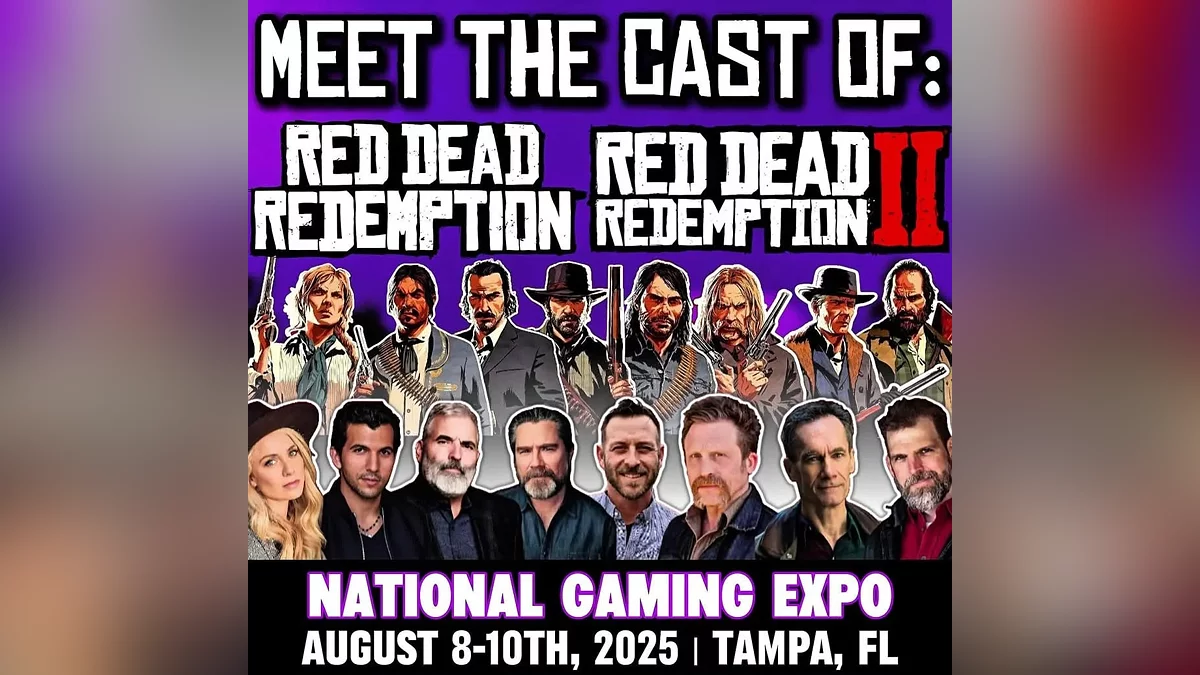 Судя по всему, речь шла о встрече актёров основного каста игр серии RDR в рамках National Gaming Expo, включая Роджера Кларка (Roger Clark), а также «голоса» Датча ван дер Линде, Сэди Адлер, Мики Белла, Хозии Метьюза и других персонажей. О нём было известно и раньше, но полный список участников представили лишь вчера, в пятницу 20 июня. Мероприятие пройдёт с 8 по 10 августа в городе Тампа (Флорида, США). К слову, там же пройдёт отдельная встреча с актёрами Grand Theft Auto.