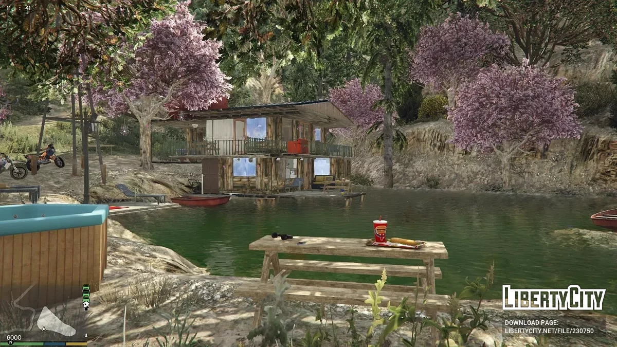 Мод добавляет лесное убежище с домом на севере карты, на берегу озера Мон-Гордо . Дом имеет два этажа : на первом — гостиная, на втором — спальня. Отлично подходит для отдыха на природе, рыбалки или ролевых сцен. Можно взять кроссовый мотоцикл и ...
