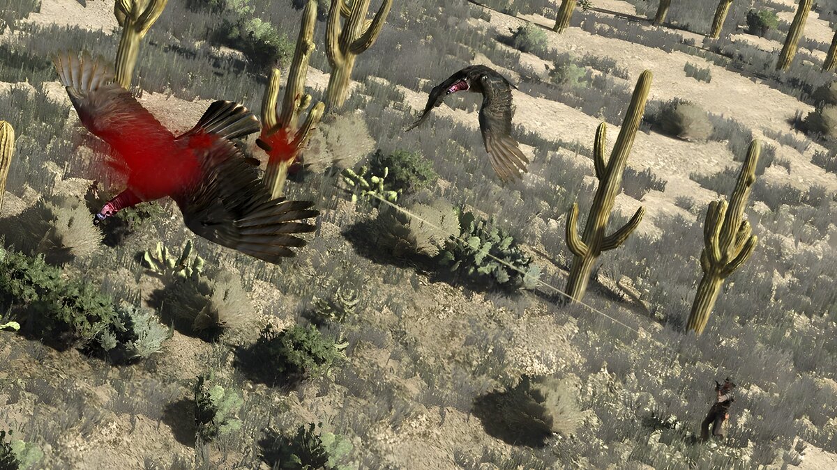 Стаи птиц представляют собой отличные цели для охоты, включая как случайные скопления, так и стервятников, бесцельно кружащих над местами, где скрываются бандиты. Также в качестве мишеней подойдут стада волков и койотов, которые часто попадаются на пути. Однако следует быть осторожным: вход и выход из режима «Мертвый глаз» автоматически перезаряжает ваше оружие. Это означает, что убийство не будет засчитано в рамках этой задачи.