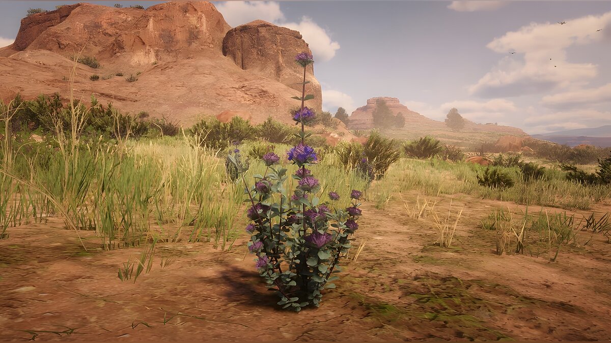 Пустынный шалфей — одно из самых распространенных растений, которое можно встретить в регионах Чолла-Спрингс, Рио-Браво и Диес-Коронас. Если вы собираетесь его искать, настоятельно рекомендуем держать путь к равнинам Гаптун-Бридж, где это растение растет в изобилии. С помощью карты выживания вы сможете быстро ориентироваться и находить места, где произрастает пустынный шалфей.