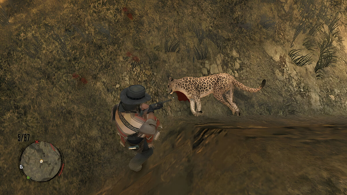Если Хан не появляется, попробуйте подстрелить несколько животных — это может привлечь его внимание и вызвать его появление. По сути, Хан ведет себя подобно пуме, но отличается текстурой и обладает немного большим запасом здоровья, потому убить его не составит особого труда.