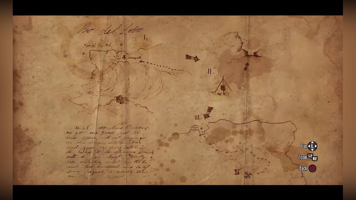 Отправляйтесь в Рио-дель-Лобо к скале Дель-Лобо. Двигаясь на юг в этом районе, следуйте по главной дороге, которая поднимается к реке. Когда дорога закончится, у кемпинга, встаньте лицом к реке, чтобы увидеть щель в хребте, обозначенную на карте сокровищ. Сокровище находится по ту сторону скалы, на уступе. Чтобы добраться до него, обойдите скалу справа, а затем держитесь левой стороны по мере спуска.