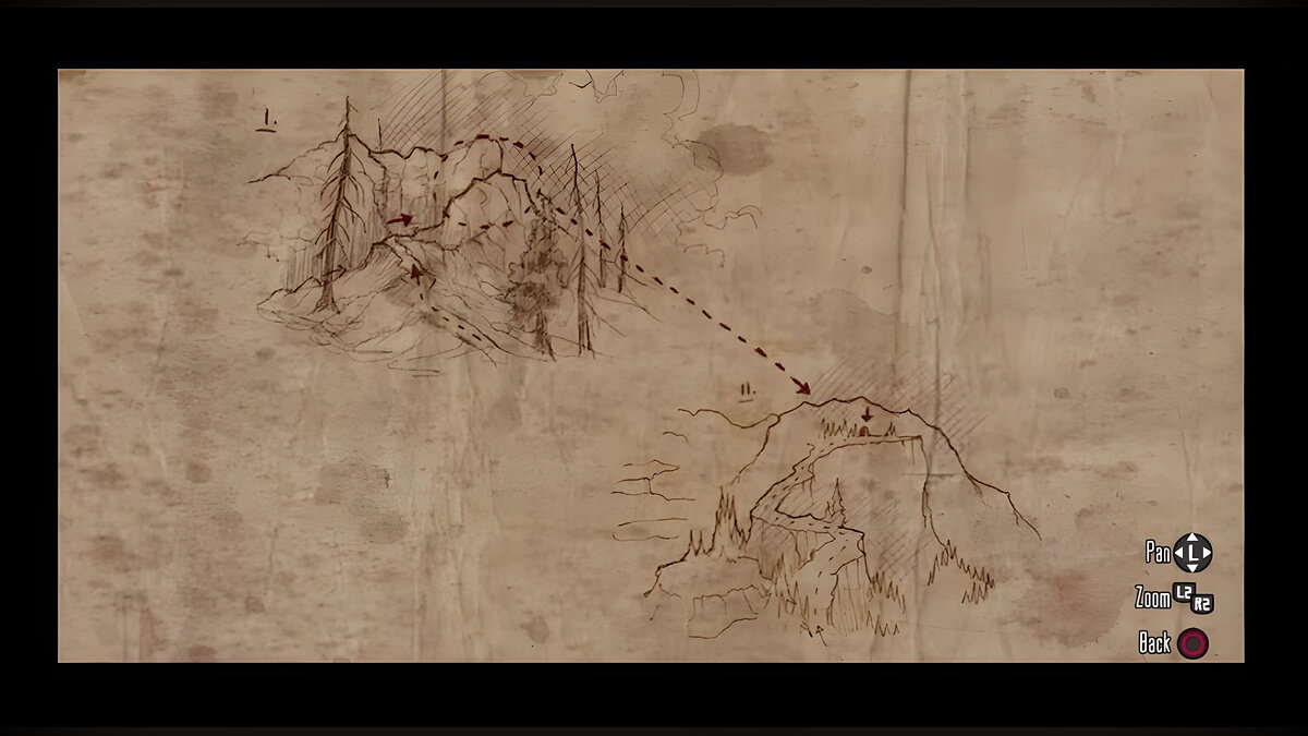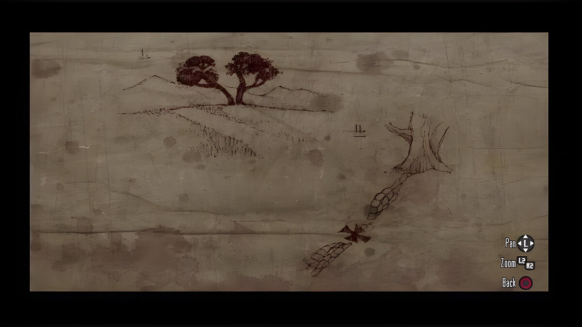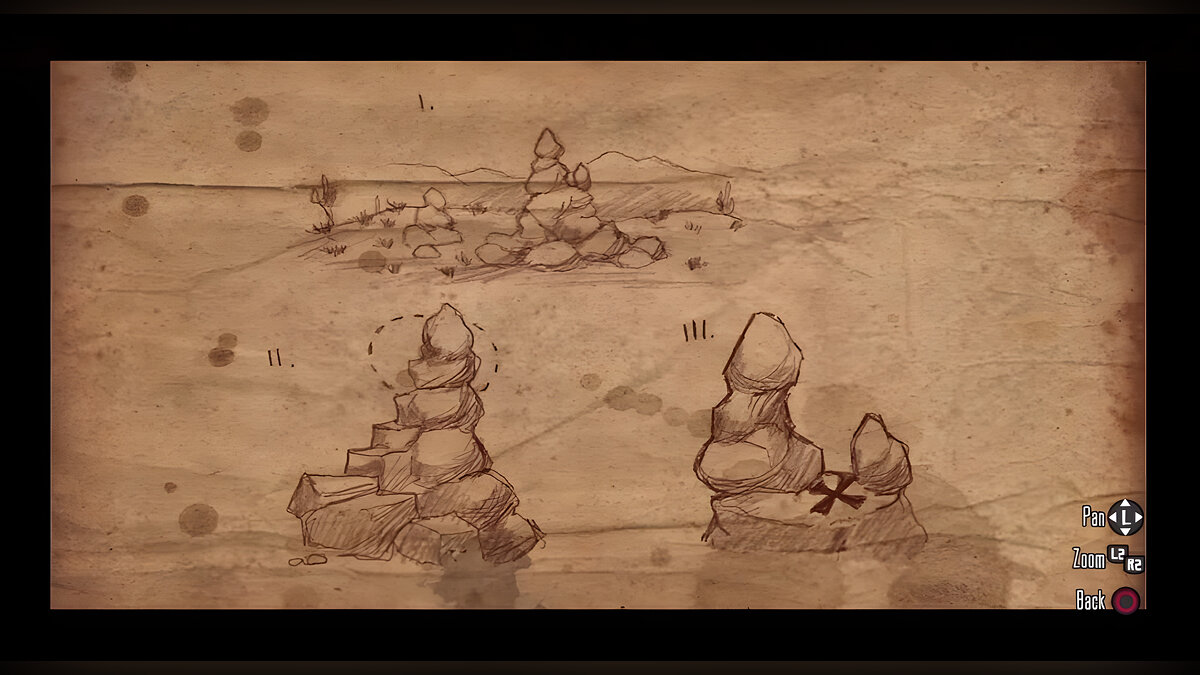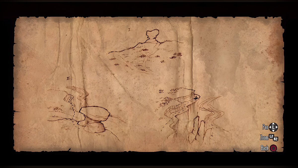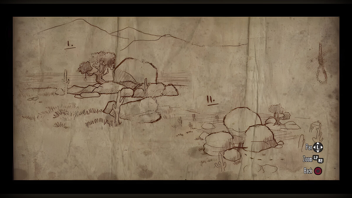 Отправляйтесь к Хенгинг-Рок, расположенному на перекрестке к северу от Армадилло. Карта сокровищ покажет вам переднюю и заднюю часть этой местности. Просто обойдите скалу так, чтобы оказаться лицом к горам, как указано на карте. Тут вы и найдете первое сокровище.