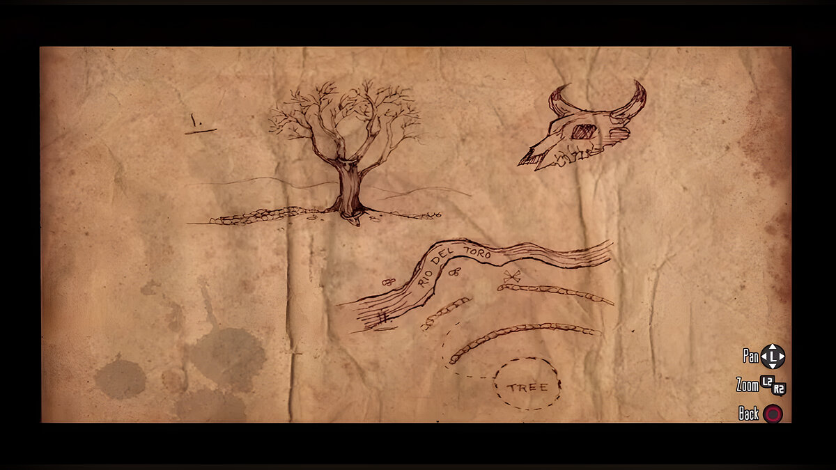 Следующее сокровище расположено вдоль берега реки в Рио-дель-Торо, к северо-западу от Чупаросы. Ищите дерево, находящееся примерно в 15 метрах от берега, украшенное черепами крупного рогатого скота.